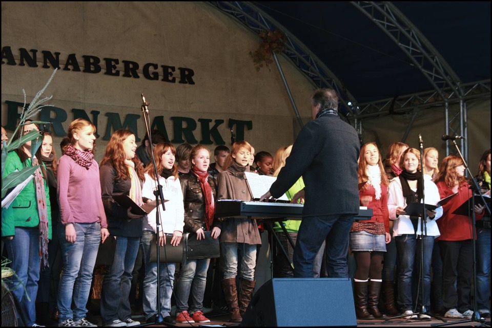 Seit 20 Jahren gibt es einen intensiven Kulturaustausch zwischen Baden-Württemberg und Sachsen. Jedes Jahr treffen sich 200 - 400 Schüler jeweils aus beiden Bundesländern in der Schulmusik- und Schulkunstbegegnung um gemeinsam zu musizieren, zu tanzen und zu malen. Vom 29.9. bis 4.10. fand das Treffen in diesem Jahr in Annaberg-Buchholz im Erzgebirge statt, zu dem auch der Chor des Max-Planck-Gymnasiums Nürtingen mit seinem Chorleiter Herbert Kampmann vom Kultusministerium eingeladen wurde. Die Begegnung gipfelte in einem grandiosen Abschlusskonzert am 3. Oktober zum Tag der Deutschen Einheit.