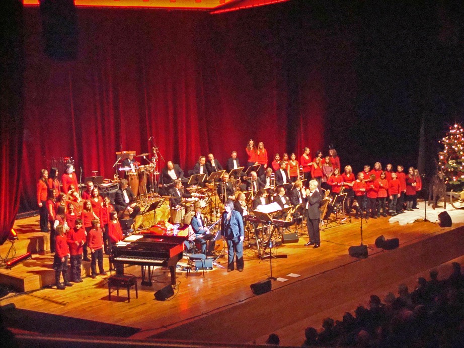 Den ersten Teil des Konzertes gestaltete die Big Band mit Paul Carrack und zeigte ein professionelles swingendes Weihnachtskonzert, das den ganzen Saal zum Mitwippen brachte. Nach der Pause stieg der Adrenalinspiegel der Schüler, denn sie wussten, jetzt waren sie an der Reihe. Etwas aufgeregt warteten sie hinter der Bühne auf ihren Auftritt und waren stolz, als es endlich losging. Der Hit „White Christmas“ war der erste gemeinsame Song zum Warmmachen und gelang gut. Danach löste sich sichtlich die Anspannung und der Spaß begann. Bei dem Hit „Living Years“, wo Carrack ganz dezent zunächst allein am Flügel begann steigerte sich die Emotion, als der MPG-Kammerchor dazu einsetzte. Mit seinen hellen klaren Stimmen lieferte er eine engelsgleiche Oberstimme, dass die ersten Tränen im Publikum deutlich sichtbar wurden. Danach war das Publikum nicht mehr zu halten und gab Standing Ovations. So folgte natürlich noch eine letzte gemeinsame Zugabe mit dem traditionellen „Silent Night“ als Swing-Version. Im wahrsten Sinne des Wortes „beschwingt“ fuhren die Nürtinger Jugendlichen danach wieder nach Hause, natürlich mit entprechend signierten Eintrittskarten der Musiker.